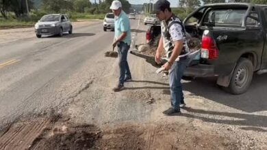 Ante la inacción, un concejal metanense se puso a tapar los baches de la RN 9/34
