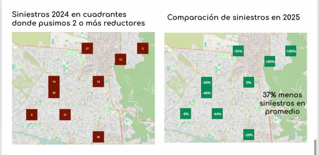 Un ejemplo concreto se dio en avenida Arenales, donde la colocación de reductores a la altura del ingreso a Popeye redujo los siniestros en más del 55%.