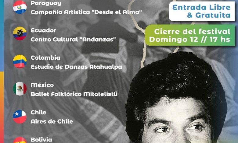 El festival reunirá a delegaciones de Argentina, Bolivia, Chile, México, Colombia, Ecuador y Paraguay. El evento, de entrada libre y gratuita, promete cuatro días de música, danza y cultura popular.