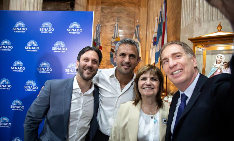 Participan en la mesa el ministro del Interior, Diego Santilli, el ministro de Economía, Luis Caputo, y los titulares y jefes de bloque en ambas cámaras, entre otros representantes del oficialismo.