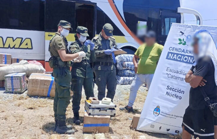 El personal de la Fuerza advirtió que un grupo de mujeres que viajaba en un colectivo tipo “tour de compras” —proveniente de Salta y con destino a Mendoza— intentaba ocultar un cargamento de droga.