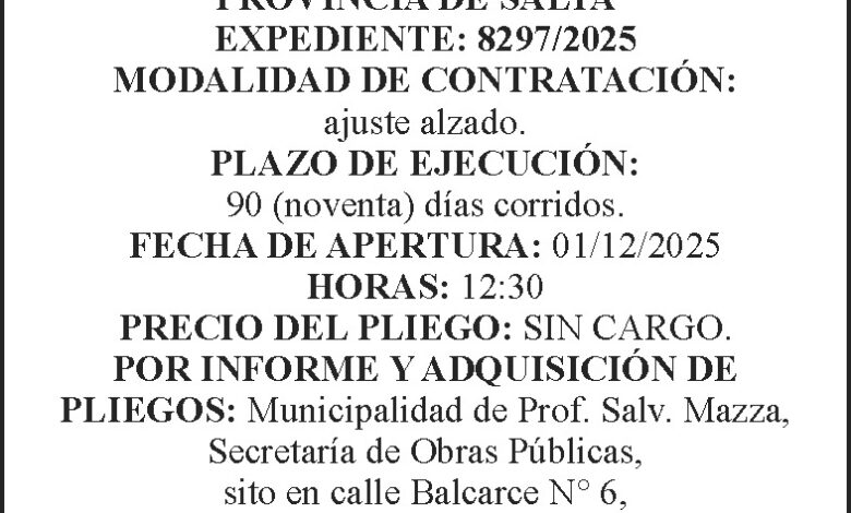 MUNICIPALIDAD DE SALVADOR MAZZA ADJUDICACION SIMPLE Nº 08/25 Adjudicación Simple Nº 08/25 Fecha de publicación: 19/11/2025