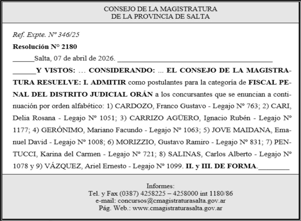 CONSEJO DE LA MAGISTRATURA DE LA PROVINCIA DE SALTA