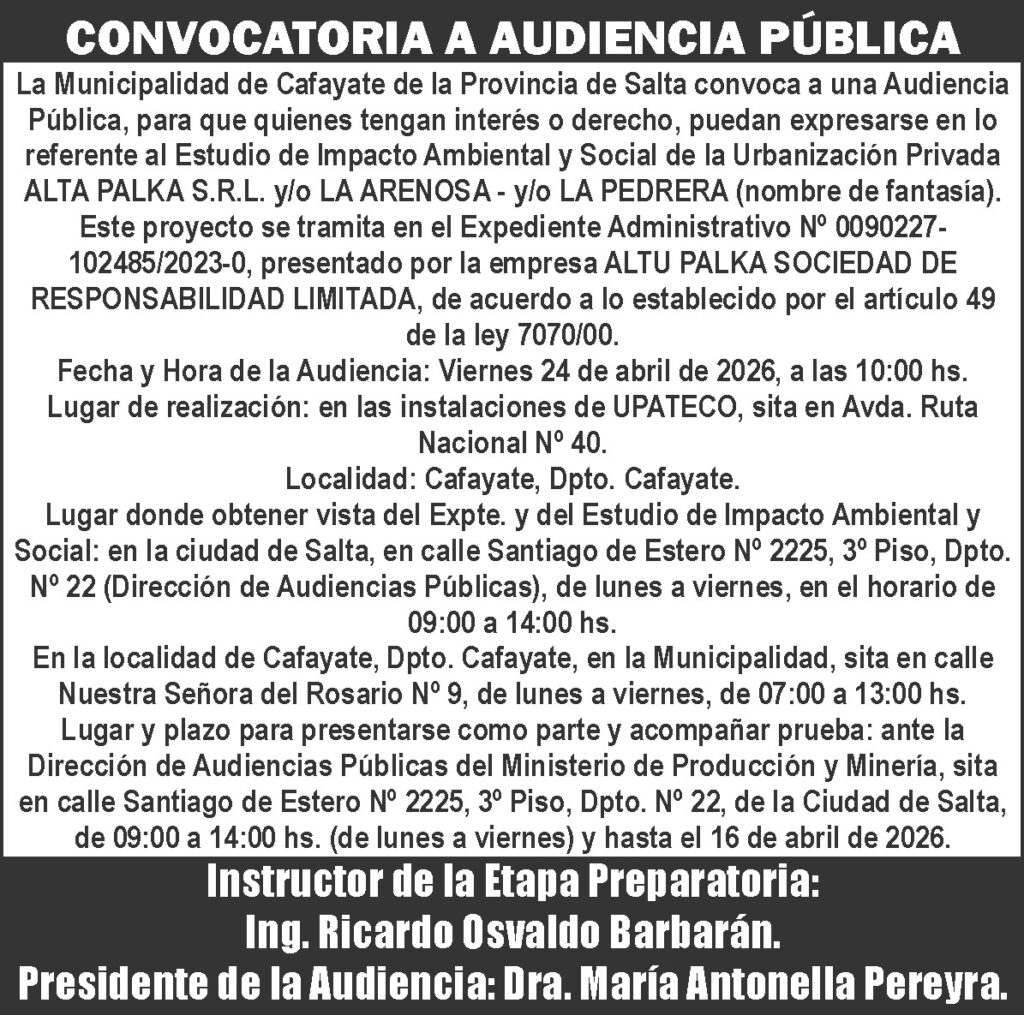 CONVOCATORIA A AUDIENCIA PUBLICA