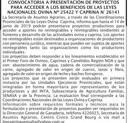 Convocatoria Proy Ley Ovina y Caprina Convocatoria Proy Ley Ovina y Caprina Fecha de publicación: 23/05/2019