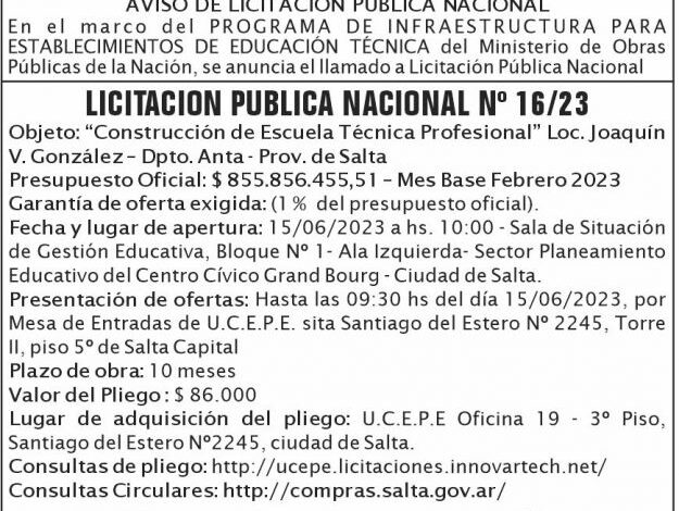 LICITACIÓN PRIVADA 16 MECCT Ucepe