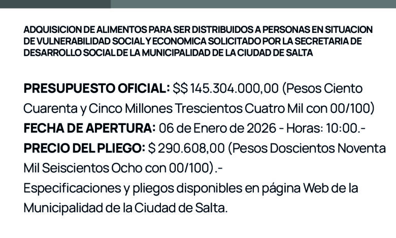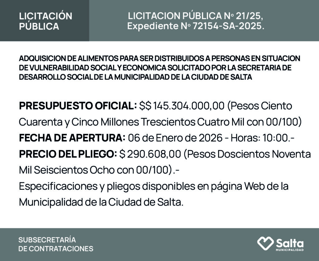 MUNICIPALIDAD DE LA CIUDAD DE SALTA LICITACION PUBLICA N° 21/25 Licitación Pública N° 21/25 Fecha de publicación: 13/12/2025
