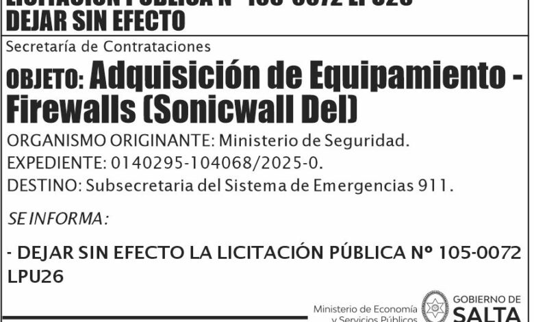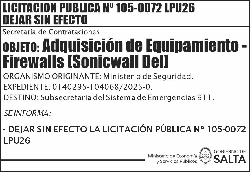 GOBIERNO DE SALTA LICITACION PUBLICA Nº 105-0072 LPU26 Licitación Pública Nº 105-0072 LPU26 Fecha de publicación: 14/04/2026