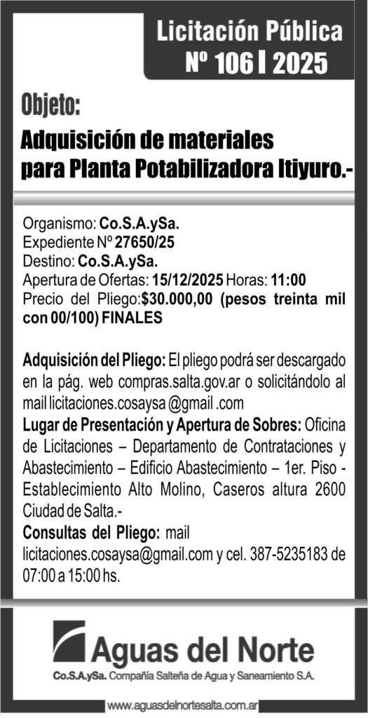 COMPAÑIA SALTEÑA DE AGUA - AGUAS DEL NORTE