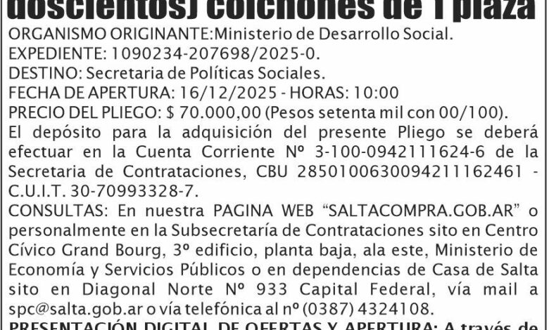 GOBIERNO DE SALTA LICITACION PUBLICA Nº 112-0393 LPU25 Licitación Pública Nº 112-0393 LPU25 Fecha de publicación: 05/12/2025