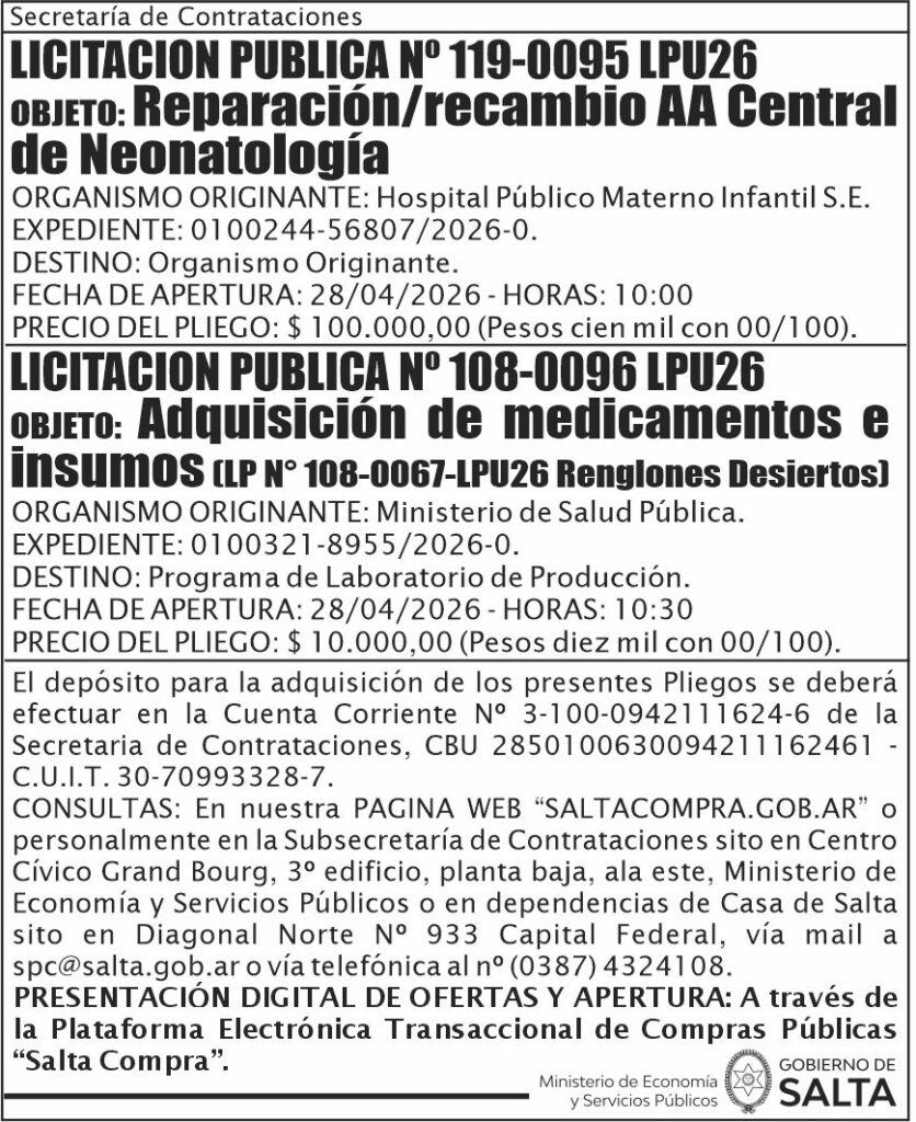 LICITACION PUBLICA Nº 119-0095 LPU26