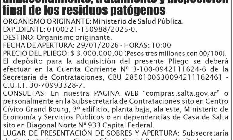 GOBIERNO DE SALTA LICITACION PUBLICA Nº 18/25 Licitación Pública Nº 18/25 Fecha de publicación: 14/01/2026