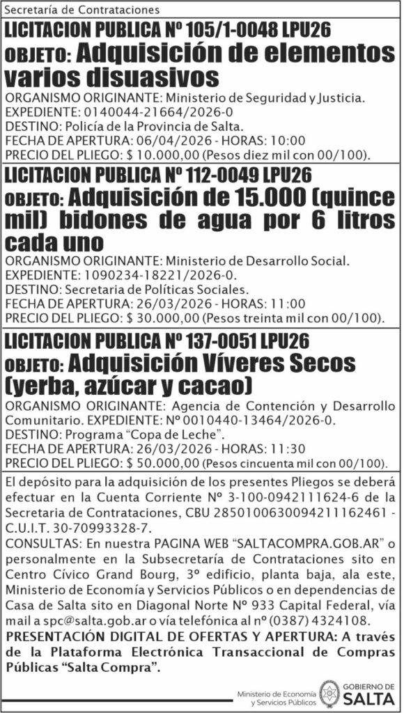 LICITACIONES PUBLICAS N° 48,49Y 51