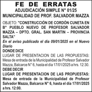 Fe de Erratas : Adjudicación Simple Nº 01/25