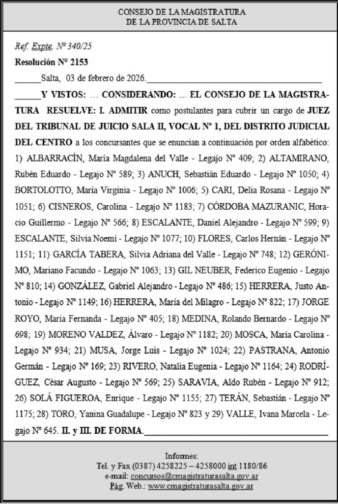 CONSEJO DE LA MAGISTRATURA DE LA PROVINCIA DE SALTA