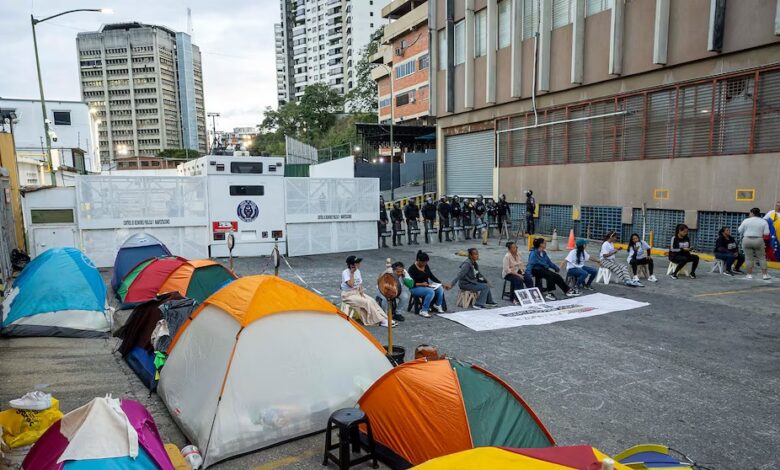 Madres de presos políticos mantienen un campamento frente a una cárcel en Caracas