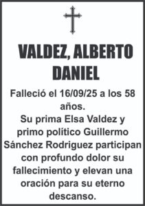 Falleció el 16/09/25 a los 58 años. Su prima Elsa Valdez y primo político Guillermo …