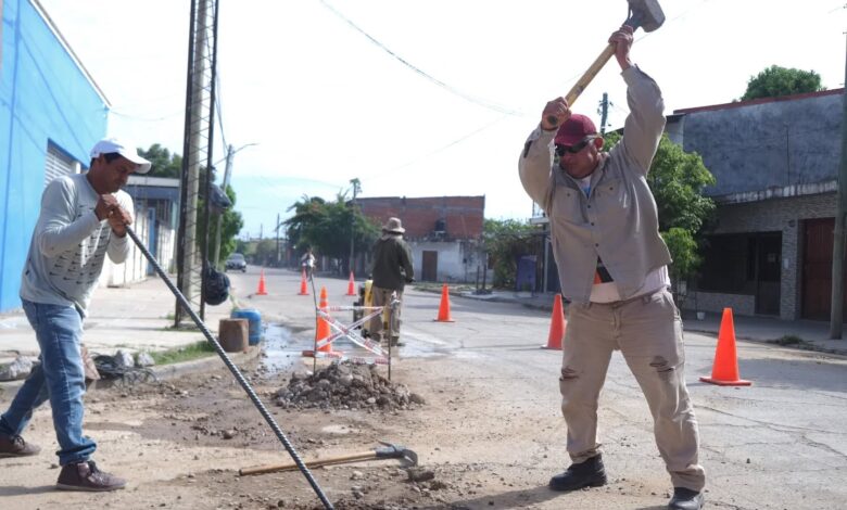 Por otro lado, en la intersección de calles Alberdi y Perito Moreno, se llevó a cabo la demolición de pavimento de hormigón para realizar una descarga en la red cloacal del Barrio Vialidad.