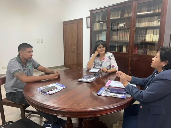 Estuvieron presentes Gabriela Carral, en representación del Obispado, el Prof. José Díaz de la Coordinación de Juventud y la Prof. Narda Salguero de la Gerencia de la Mujer, con el objetivo de abordar de manera conjunta la problemática de la trata de personas.