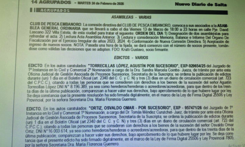 En la provincia, diversas actuaciones judiciales deben comunicarse mediante edictos pagos en medios gráficos habilitados, permitiendo que terceros interesados tomen conocimiento y, en su caso, ejerzan derechos vinculados a sucesiones, convocatorias, remates u otras instancias legales.