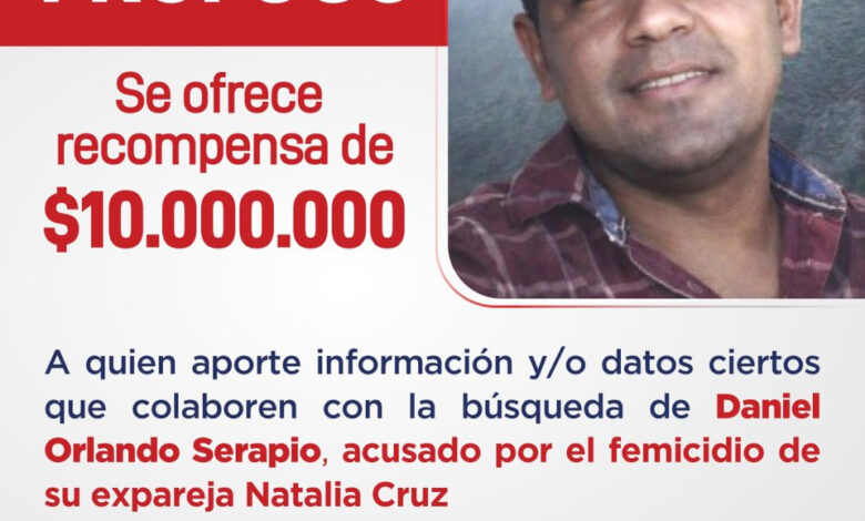 Recompensa de $ 10 millones por datos sobre Orlando Serapio por el femicidio de Natalia Cruz