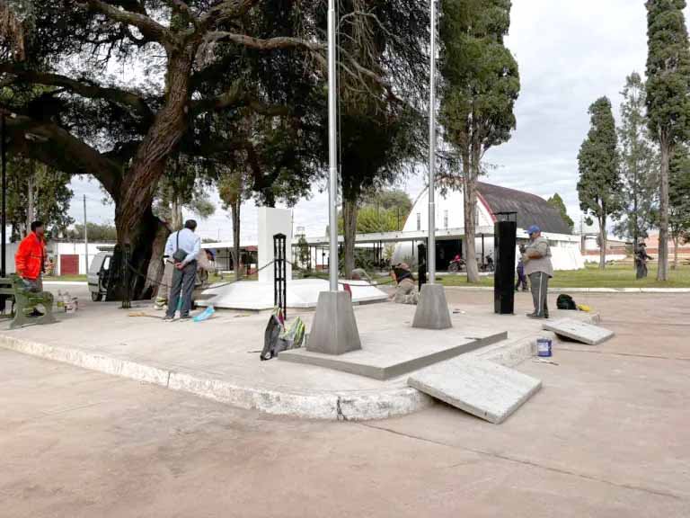 Los trabajos incluyeron la construcción del monolito con cadenas y llama votiva y la instalación de luces y mástiles.