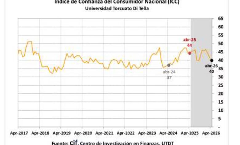 El Índice de Confianza del Consumidor (ICC) registró en abril una caída del 5,7% respecto del mes anterior, profundizando la tendencia descendente que se viene observando en 2026. El indicador alcanzó así su nivel más …