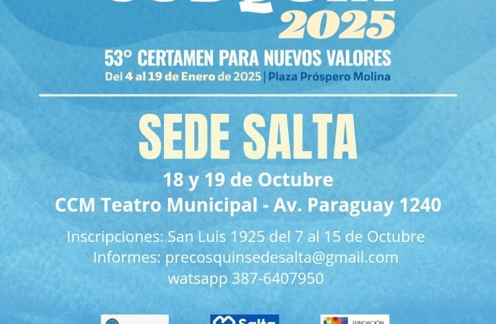 Iniciaron las inscripciones para el Pre Cosquín sede Salta 2025 que se desarrollará los días 18 y 19 de octubre en el Teatro Municipal. La Municipalidad de Salta, a través …