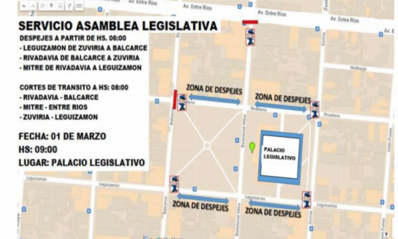 Desvíos de tránsito por la apertura de sesiones en la Legislatura y el Concejo Deliberante