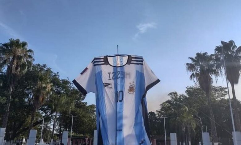 La camiseta argentina más grande está en Hipólito Yirigoyen