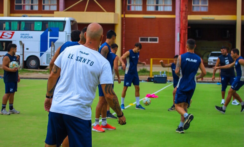 El plantel del Centro Juventud Antoniana llegó ayer a Resistencia y realizó algunos leves ejercicios en una cancha de cespéd sintético del Club Atlético Sarmiento, rival con el que debutará esta noche en el Torneo Federal A.