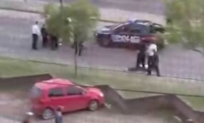 Testigos registraron la secuencia en video y alertaron a la policía, que acudió al lugar y redujo al menos a una persona involucrada en el conflicto.