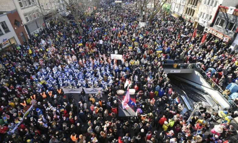 La asociación Cruz Azul-Amarilla inscribió a 10.000 participantes en una convocatoria de manifestación bajo el lema "Solidaridad con Ucrania" y se calcula que un millar de personas expresaron su apoyo a Rusia. Unos 150 motociclistas desfilaron por los alrededores de Colonia y en algunas motos se hicieron ondear banderas soviéticas.