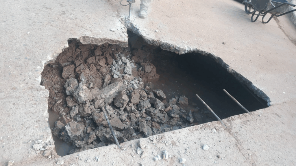 El hecho generó la preocupación de la población ante el riesgo que significaba un posible incidente por el estado de la calle, donde cualquier vehículo podría resultar dañado y con lesiones de personas.