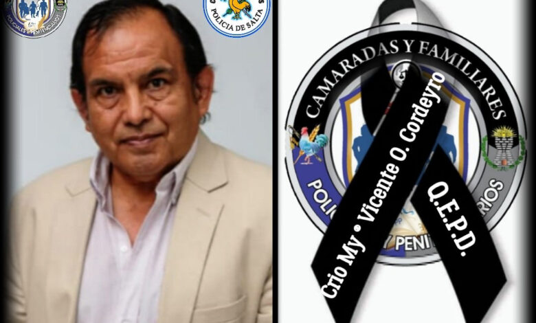 El Círculo de Oficiales de la Policía de Salta publicó en redes ayer, que, desde las 20,30 el cuerpo de Vicente Cordeyro, ex Jefe de Investigaciones de esa fuerza de seguridad, estaba siendo velado en Juramento 37.